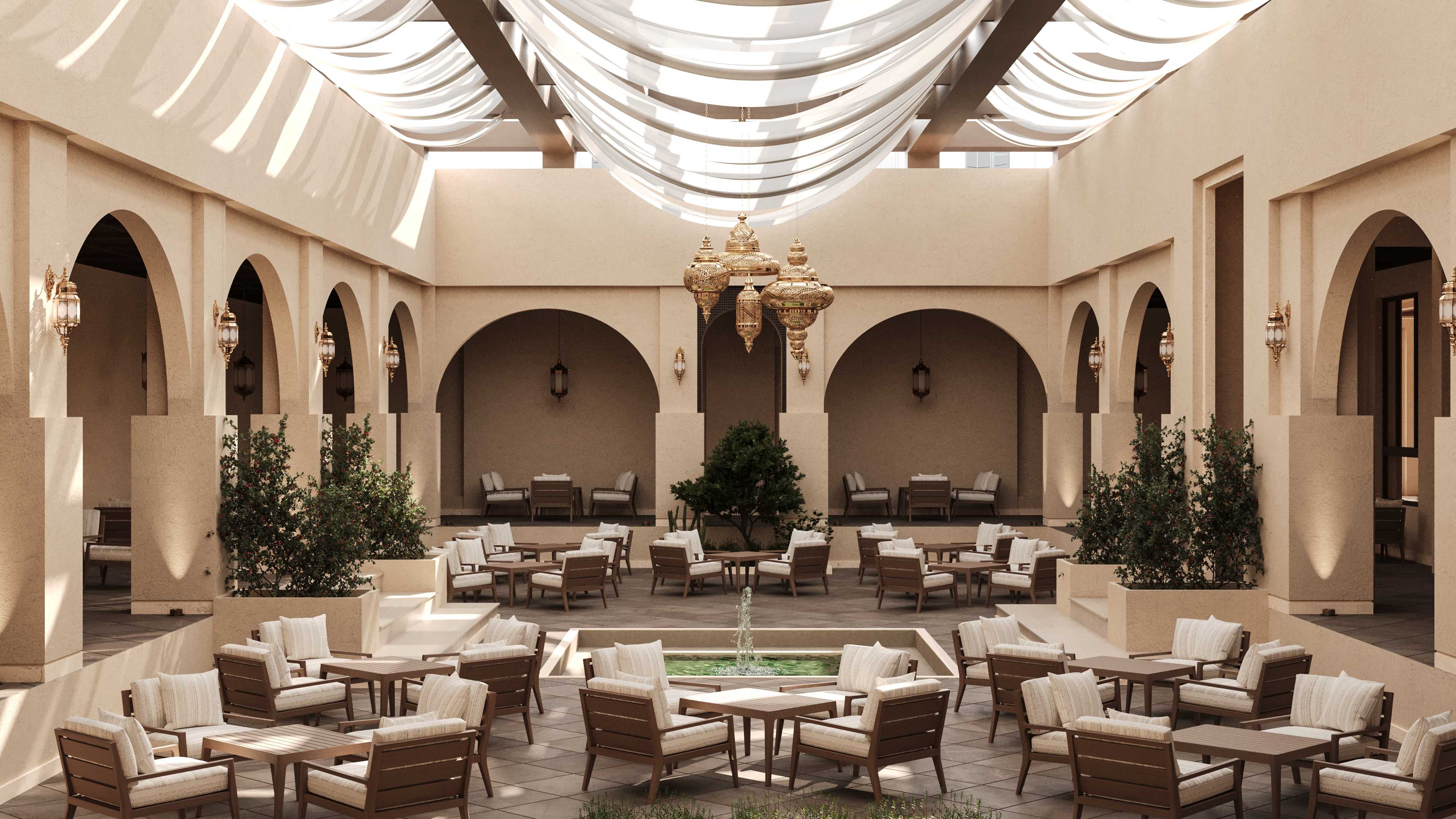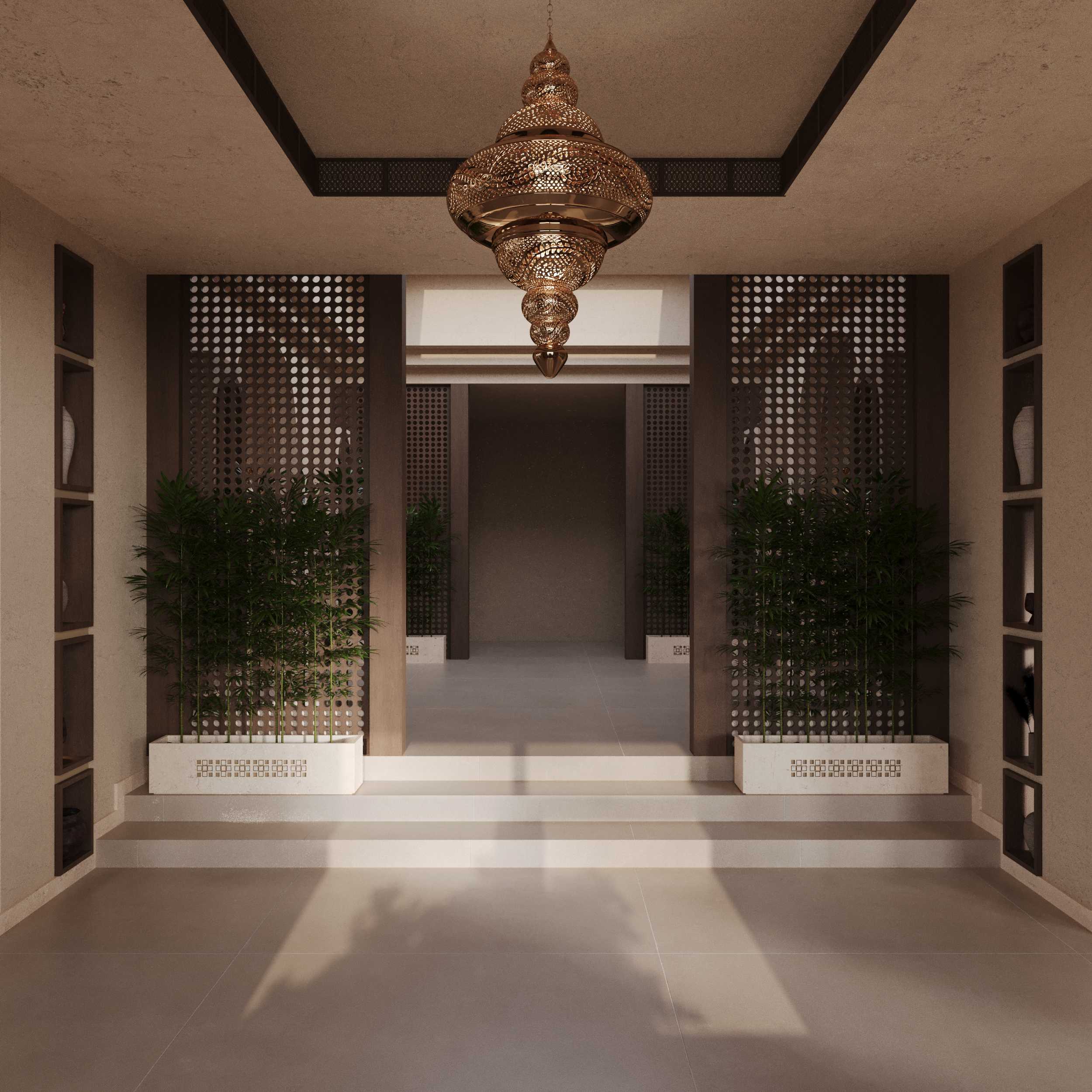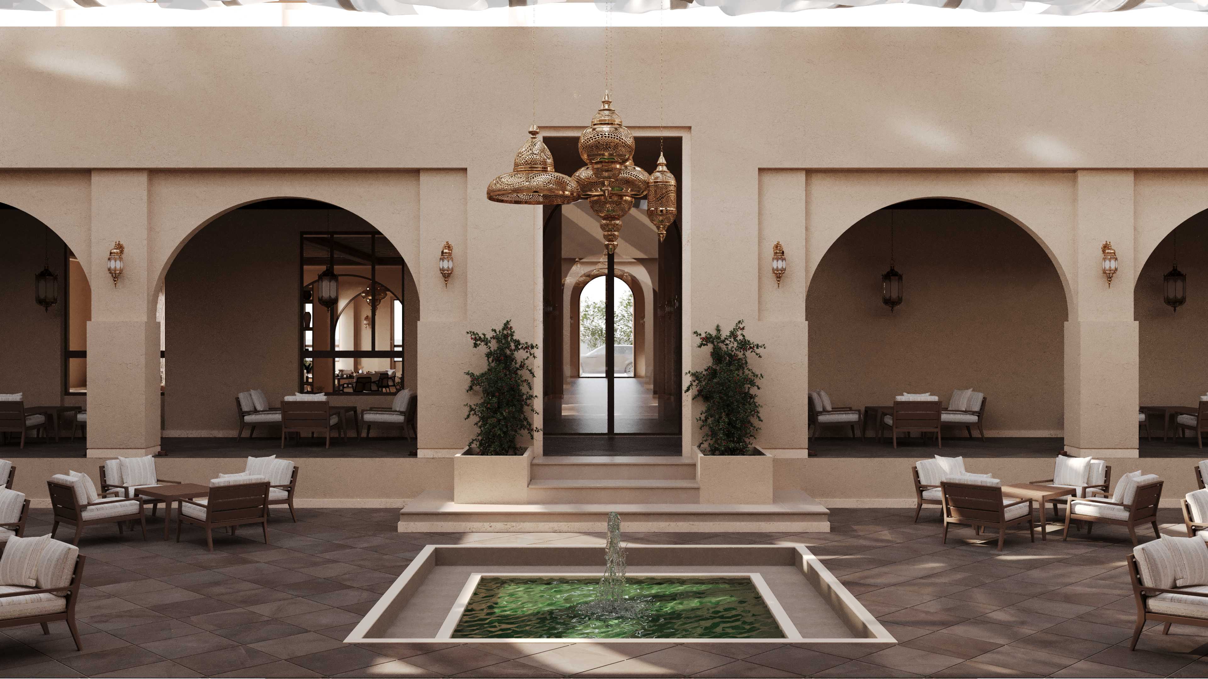 مشروع خان مندي الديوانية يجسد تجربة معمارية وغذائية تعكس روح الضيافة اليمنية الأصيلة بلمسة عصرية. استلهم التصميم من الخانات العربية القديمة، فامتزجت العناصر التراثية مع الخطوط الحديثة لتشكّل هوية دافئة وأنيقة. تتميز الواجهة الخارجية بطابعها المستوحى من العمارة اليمنية بألوانها الرملية ونقوشها البسيطة، بينما تقود الأقواس والإضاءات التقليدية عبر الممر الداخلي نحو صالة طعام تحتفي بالزخارف والألوان الترابية لتجسد دفء الضيافة. أما الفناء الخلفي، فيحاكي المجالس العربية حول نافورة مركزية وظلال منسابة، ليخلق توازناً بين الأصالة والراحة العصرية في أجواء تنقل الزائر إلى قلب التراث اليمني.