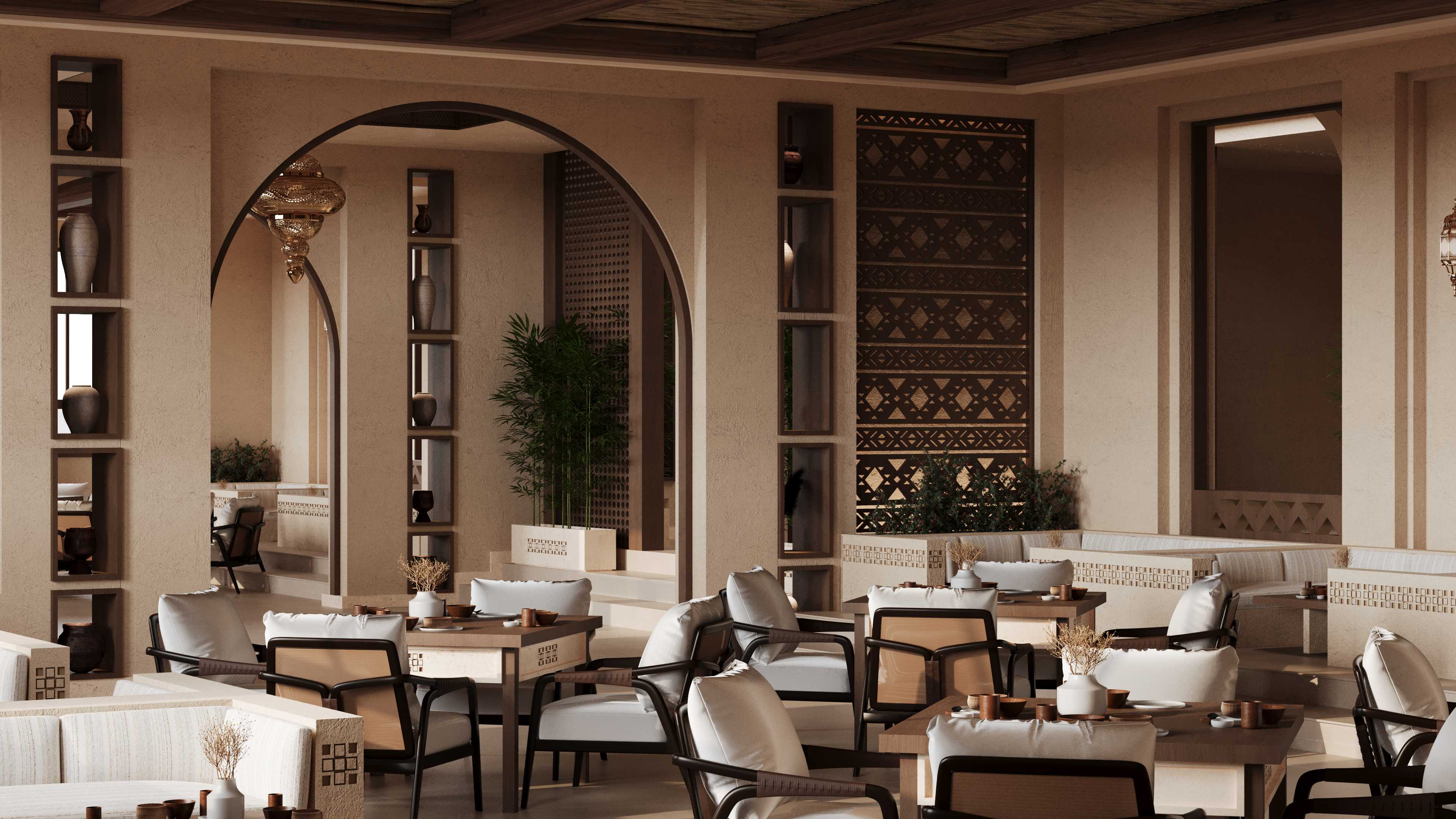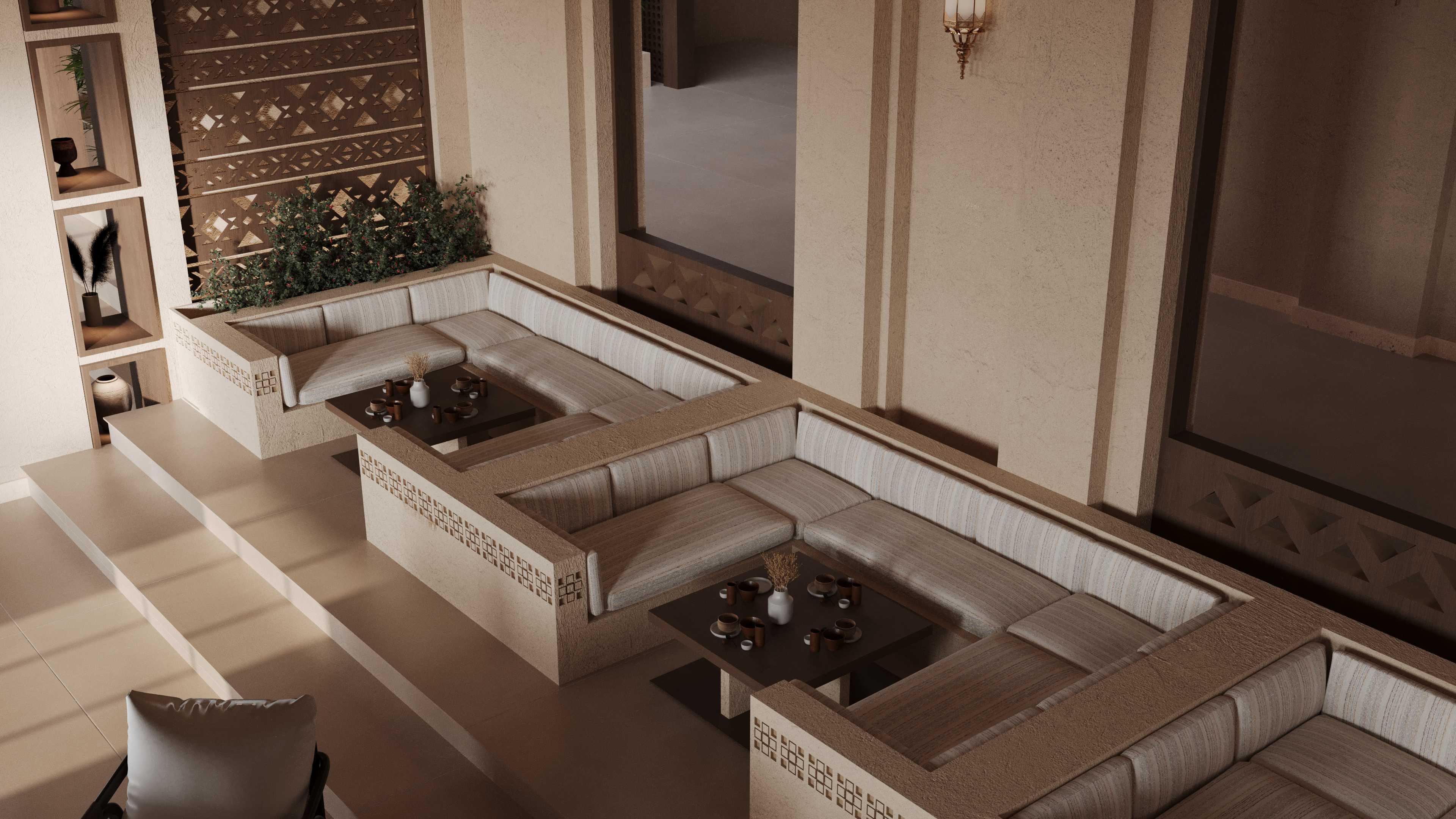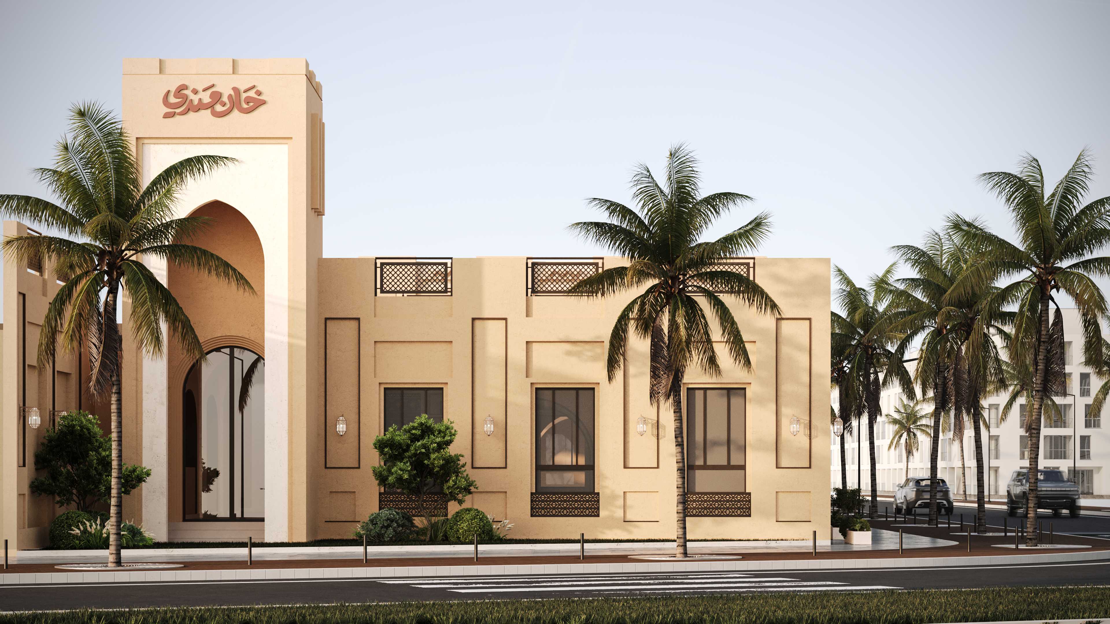 مشروع خان مندي الديوانية يجسد تجربة معمارية وغذائية تعكس روح الضيافة اليمنية الأصيلة بلمسة عصرية. استلهم التصميم من الخانات العربية القديمة، فامتزجت العناصر التراثية مع الخطوط الحديثة لتشكّل هوية دافئة وأنيقة. تتميز الواجهة الخارجية بطابعها المستوحى من العمارة اليمنية بألوانها الرملية ونقوشها البسيطة، بينما تقود الأقواس والإضاءات التقليدية عبر الممر الداخلي نحو صالة طعام تحتفي بالزخارف والألوان الترابية لتجسد دفء الضيافة. أما الفناء الخلفي، فيحاكي المجالس العربية حول نافورة مركزية وظلال منسابة، ليخلق توازناً بين الأصالة والراحة العصرية في أجواء تنقل الزائر إلى قلب التراث اليمني.