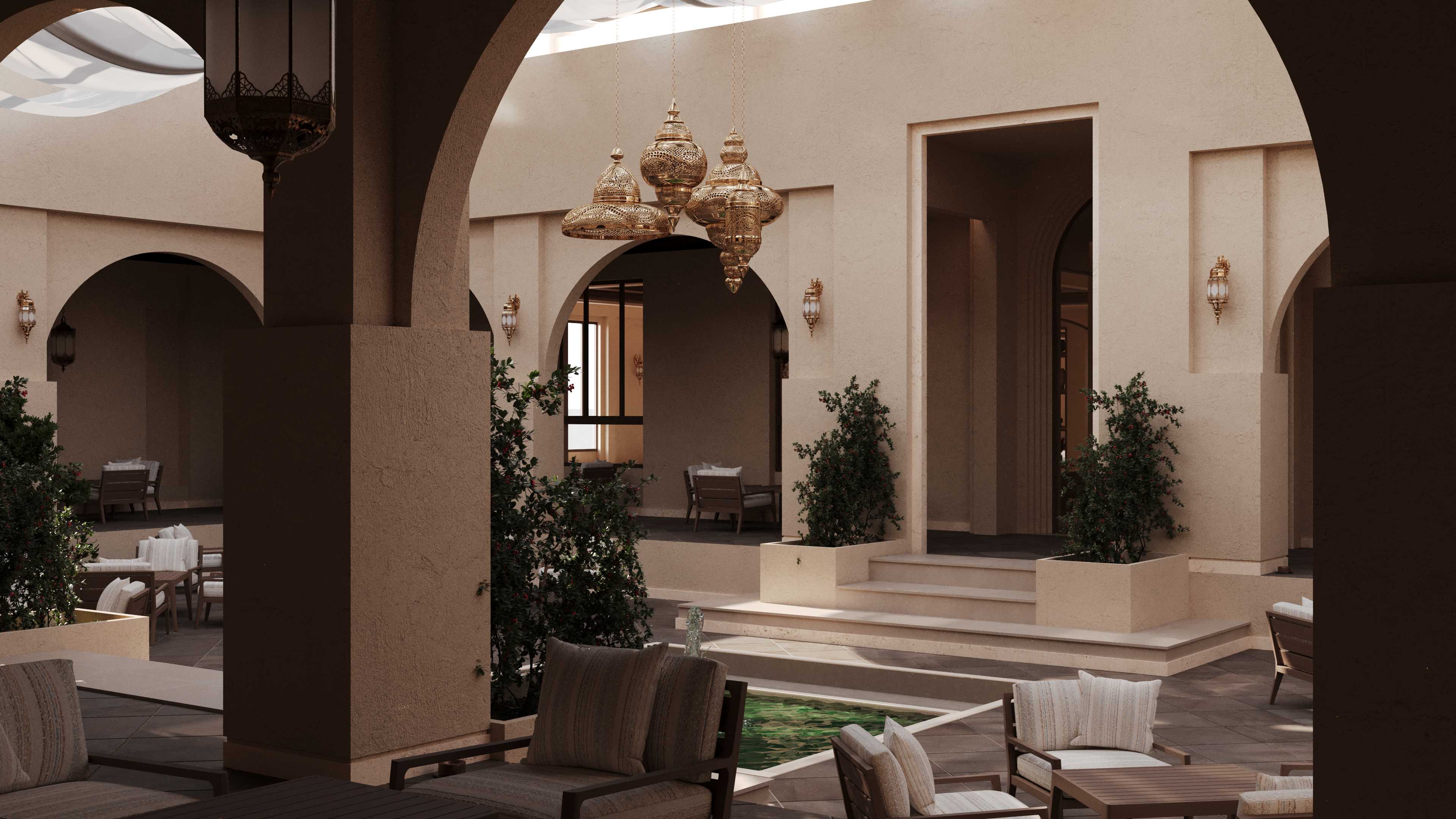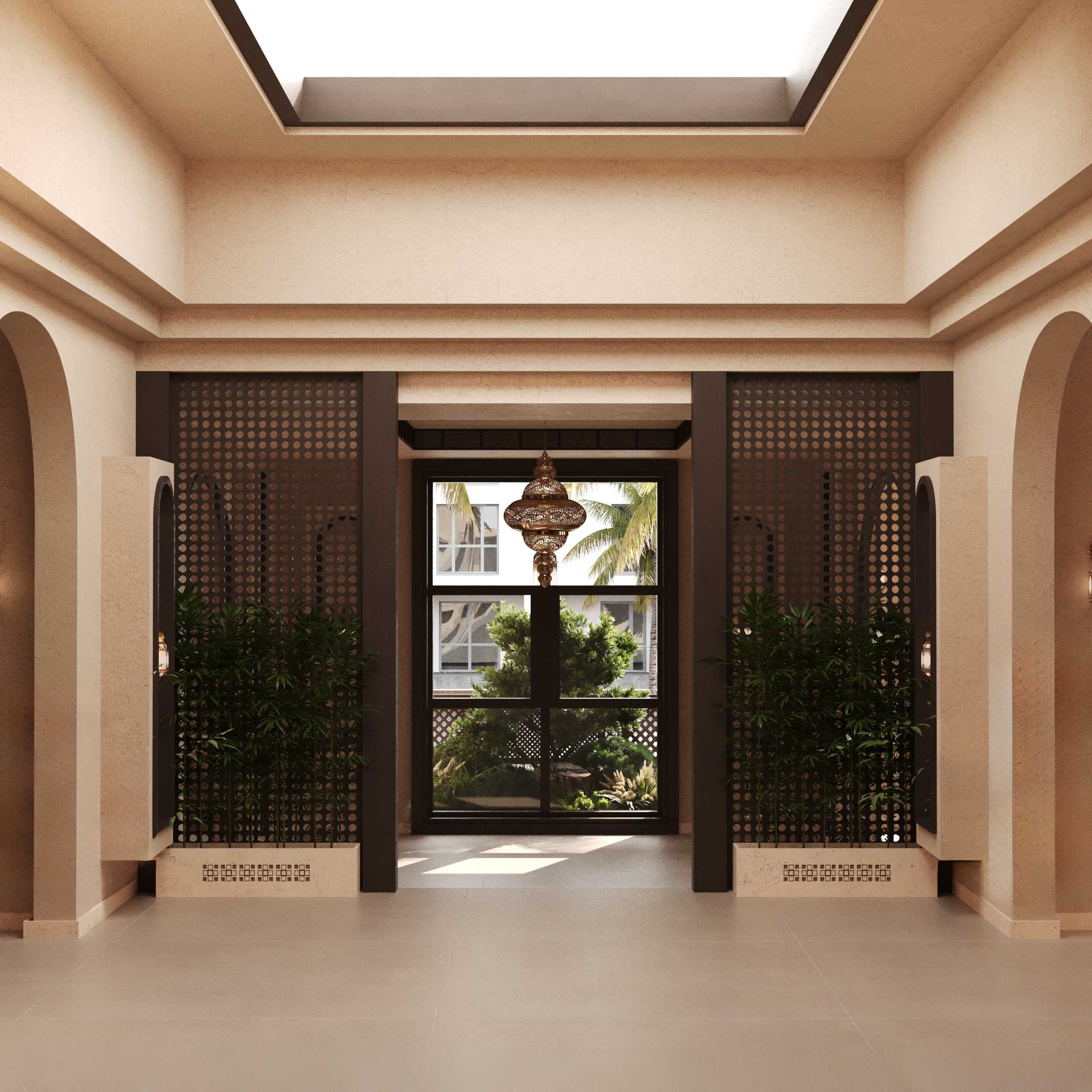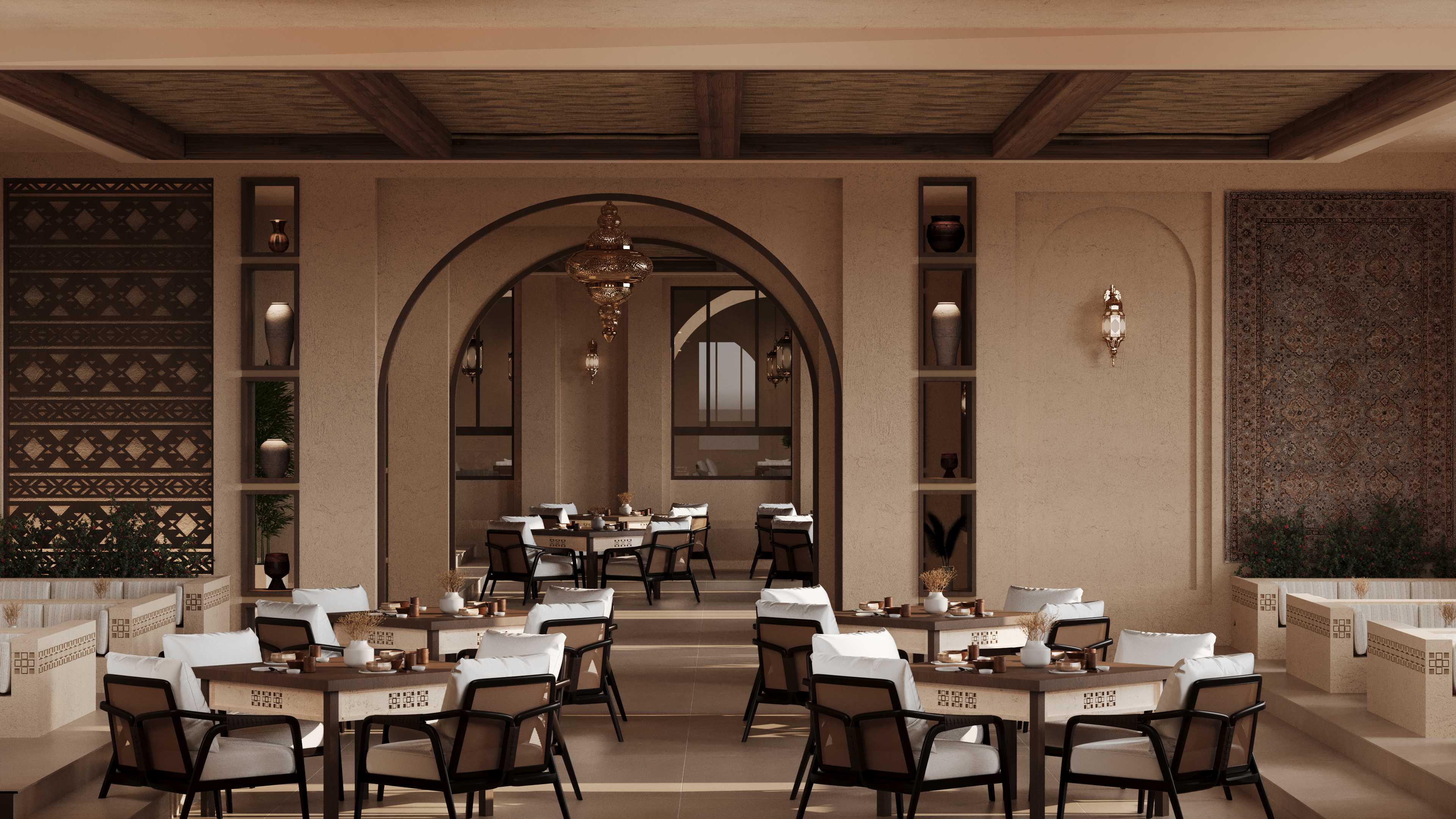 مشروع خان مندي الديوانية يجسد تجربة معمارية وغذائية تعكس روح الضيافة اليمنية الأصيلة بلمسة عصرية. استلهم التصميم من الخانات العربية القديمة، فامتزجت العناصر التراثية مع الخطوط الحديثة لتشكّل هوية دافئة وأنيقة. تتميز الواجهة الخارجية بطابعها المستوحى من العمارة اليمنية بألوانها الرملية ونقوشها البسيطة، بينما تقود الأقواس والإضاءات التقليدية عبر الممر الداخلي نحو صالة طعام تحتفي بالزخارف والألوان الترابية لتجسد دفء الضيافة. أما الفناء الخلفي، فيحاكي المجالس العربية حول نافورة مركزية وظلال منسابة، ليخلق توازناً بين الأصالة والراحة العصرية في أجواء تنقل الزائر إلى قلب التراث اليمني.